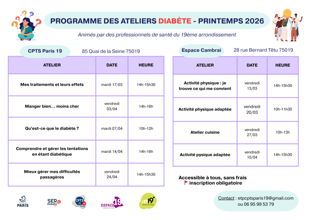 Les ateliers d’Éducation Thérapeutique du Patient (ETP) reprennent à partir de mars, en partenariat avec SER Diabète Île-de-France.
