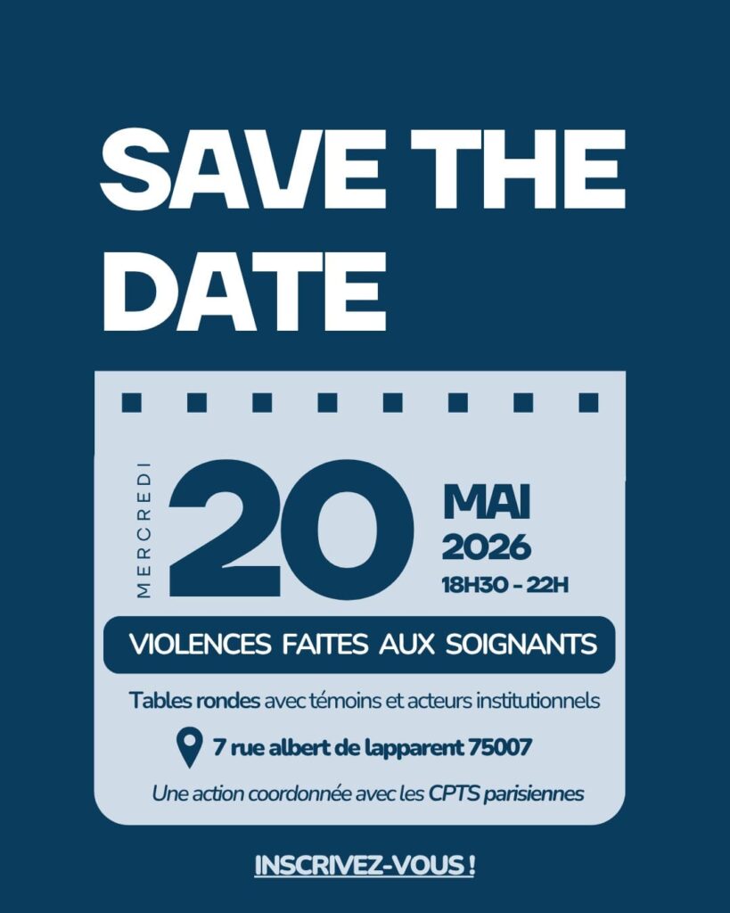 Les CPTS parisiennes organisent, avec le soutien de l'ARS Île-de-France, une soirée dédiée aux violences envers les professionnels de santé le 20 mai 2026. Cette soirée a pour objectif de diffuser un état des lieux partagé et de proposer des réponses opérationnelles afin de mieux informer, soutenir et accompagner les soignants confrontés à des situations de violences.
